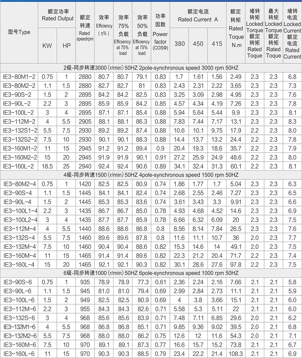 IE3(2級能效GB2)系列技術(shù)參數(shù)